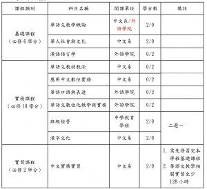 「淡江大學中國文學學系華語文教學就業學分學程」課程清單